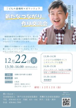 東灘区のこどもの居場所のみなさまとのつながりづくりとして講演会・交流会を実施いたします。