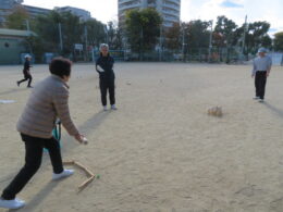 福池地域福祉センターにてラジオ体操やボッチャのつどい場を運営しているグループ「そろそろ動こう会」の方々が、最近じわじわと人気が出てきているフィンランド発祥のスポーツ「モルック」を活用して、こどもから大人まで誰もが楽しめる行事を始めたいとのことで、東灘区社協が実施する赤い羽根共同募金の公募助成を活用して新しく「モルック」の行事を始められました。