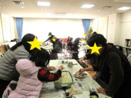 参加していた子どもたちは他の参加者や婦人会の方々から焼き方のコツを教わり、
